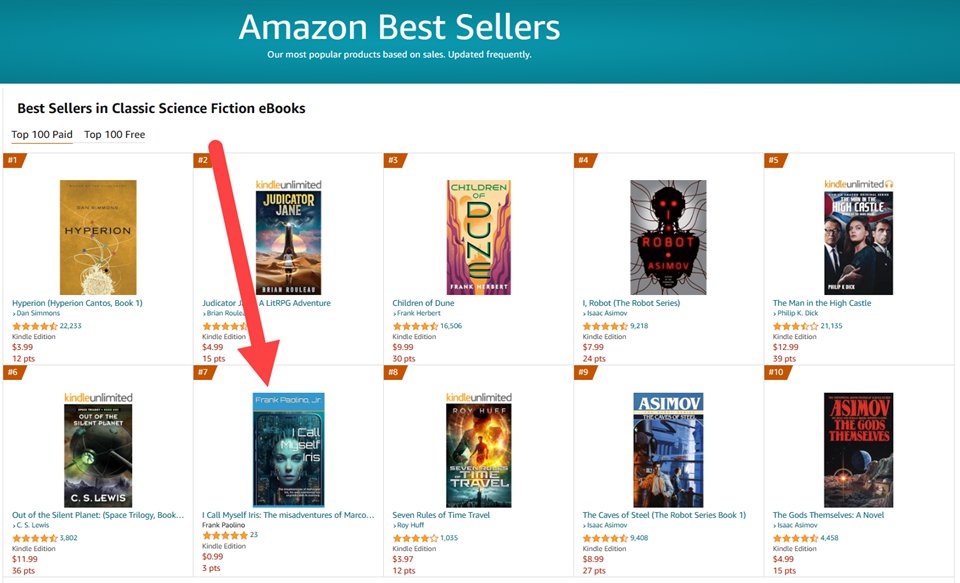 I Call Myself Iris reached #7 in Classic Science Fiction books on Amazon: